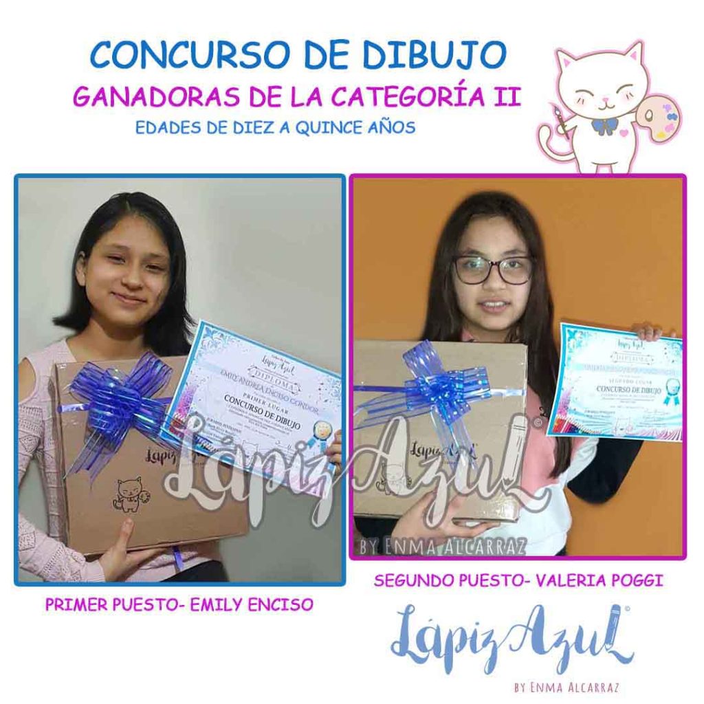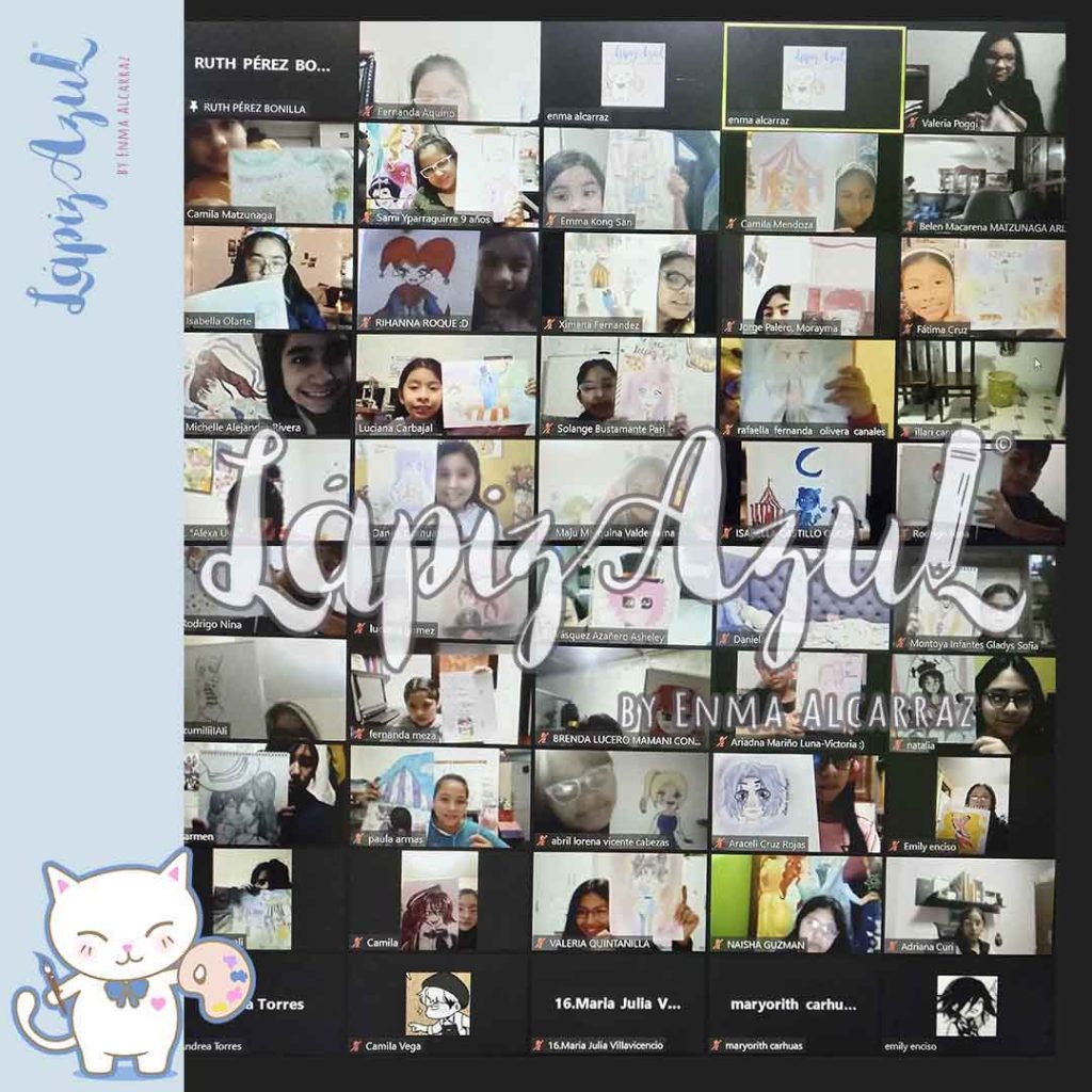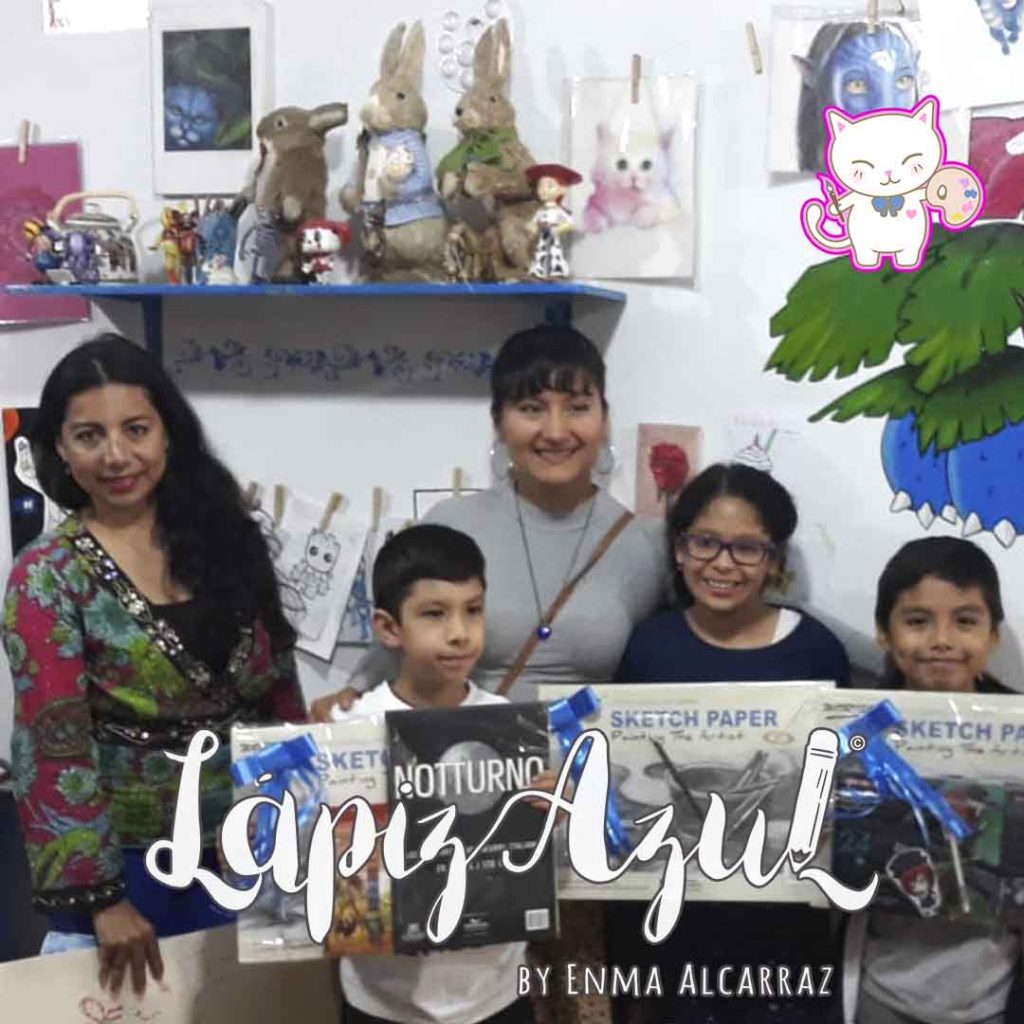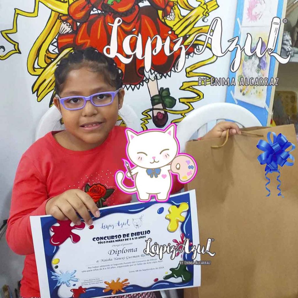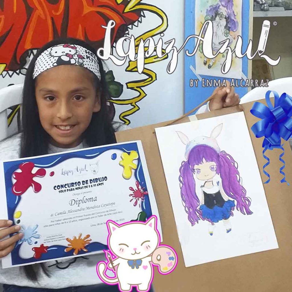 Concurso de dibujo virtual organizado por el taller de arte Lápiz Azul, año 2021.Ganadoras del concurso de dibujo organizado por el taller de arte Lápiz Azul, año 2021. Ganadoras del concurso de dibujo organizado por el taller de arte Lápiz Azul, año 2021 En la foto se aprecia a la Artista Plástica y Creadora del Taller de Arte Lápiz Azul, Enma Alcarraz, junto a los ganadores del Concurso de dibujo categoría kids nivel 1 organizado por el taller de arte Lápiz Azul realizado en el año 2019, Lima-Perú. Al lado izquierdo, Jurado invitada Artista Plástica Ruth Pérez. Al centro, Artista Plástica y Creadora del Taller de Arte Lápiz Azul Enma Alcarraz junto a los ganadores del concurso de dibujo categoría kids nivel 2 organizado por el taller de arte Lápiz Azul realizado en el año 2019, Lima-Perú. En la foto, Sergio y Fiorella, ganadores del concurso de dibujo categoría teen organizado mediante la fanpage del taller, Taller De Arte Lápiz Azul. Año 2019, Perú. Camila y su bello dibujo, ganadora del concurso de dibujo categoría kids organizado mediante la fanpage del taller, Taller De Arte Lápiz Azul. Año 2019, Perú. Naisha recibiendo su diploma y premio por el segundo puesto en el concurso de dibujo categoría kids organizado mediante la fanpage del taller, Taller De Arte Lápiz Azul. Año 2019, Perú. Roberto y Adriana, ganadores del concurso de dibujo navideño organizado por el taller de arte Lápiz Azul realizado en el año 2019 Lima Perú. Al lado izquierdo, Jurado invitado Artista Plástico Daniel Contreras junto a los ganadores del concurso de dibujo navideño organizado por el taller de arte Lápiz Azul realizado en el año 2019 Lima Perú.