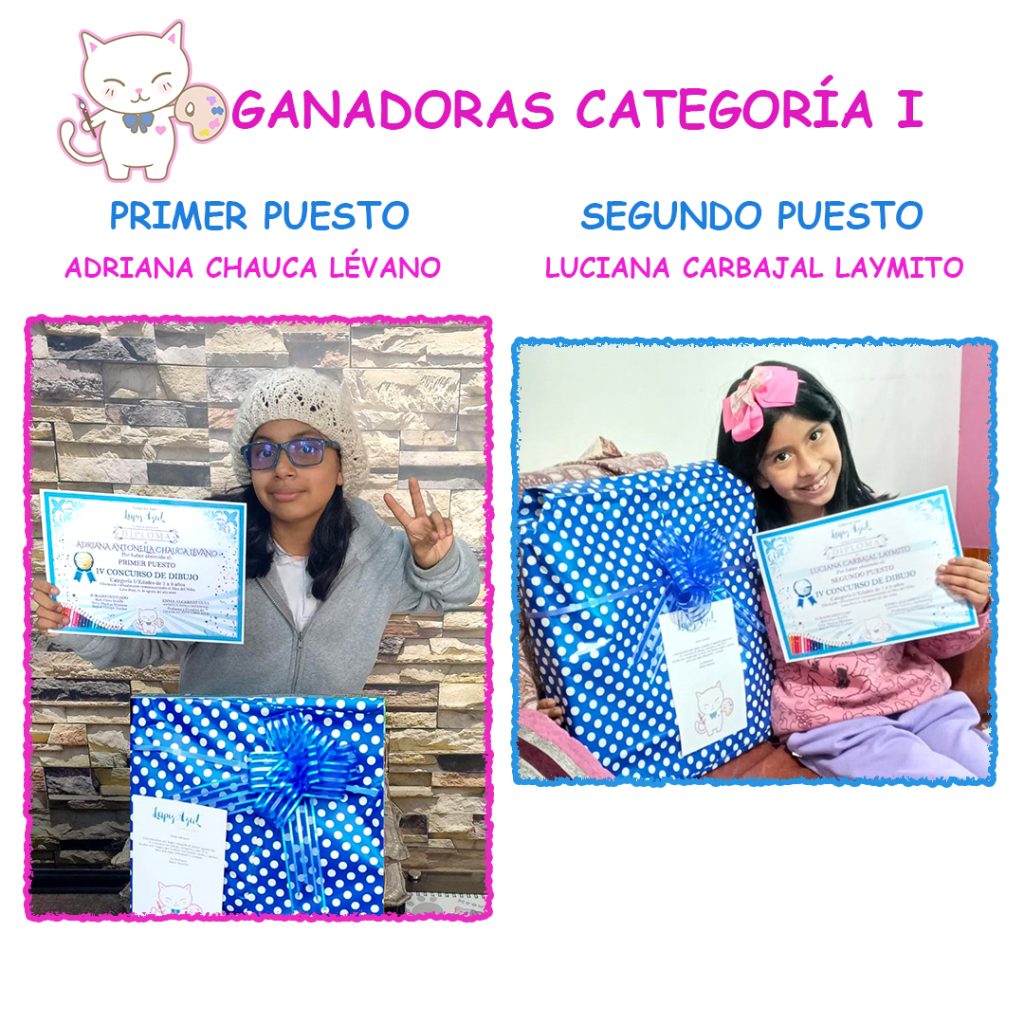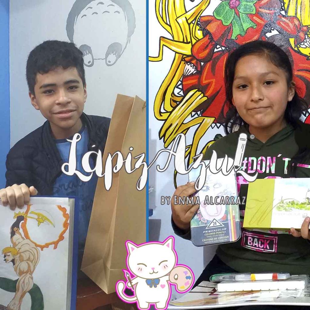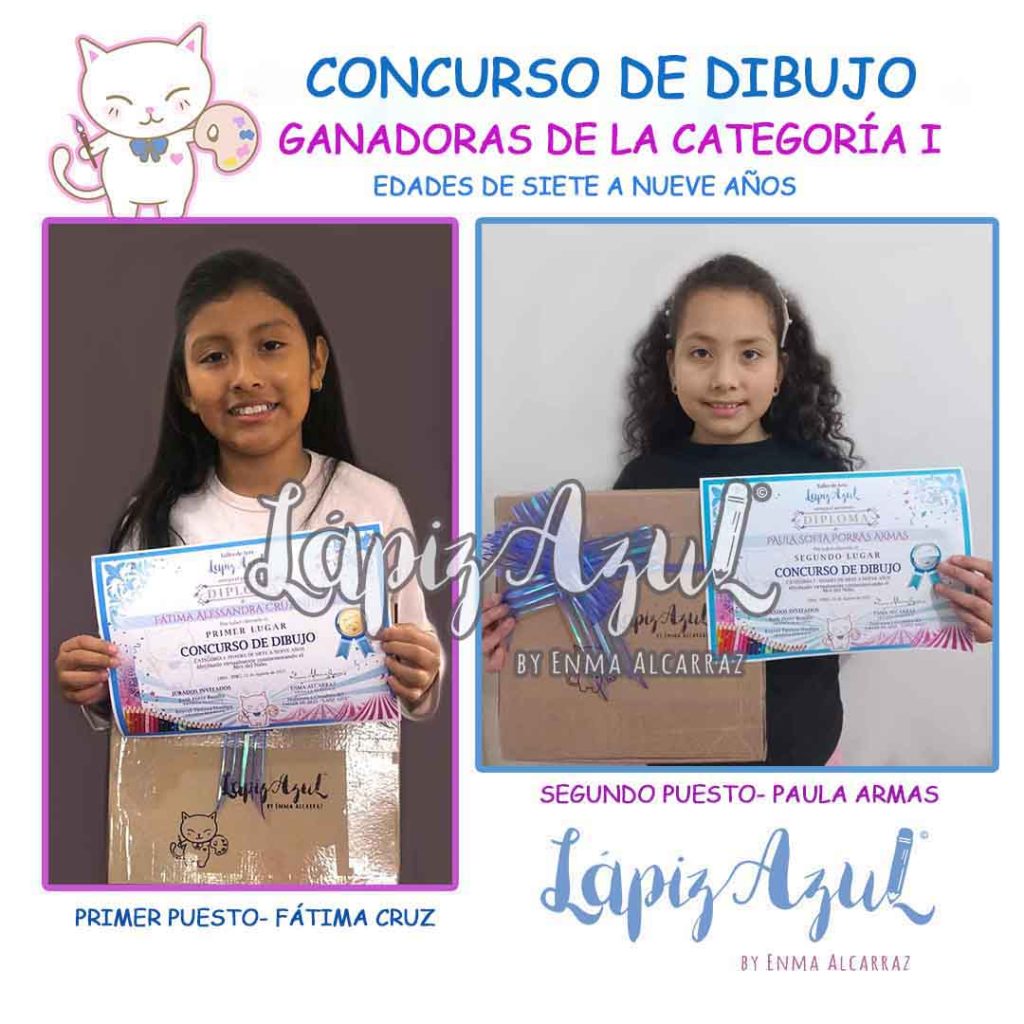 Ganadoras del concurso de dibujo en su categoría kids organizado por el taller de arte Lápiz Azul, año 2022