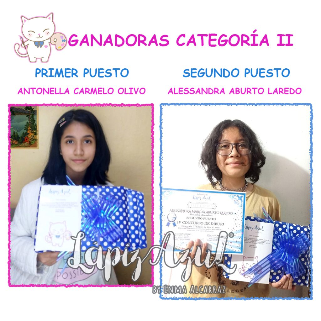 Ganadoras del concurso de dibujo en su categoría teens organizado por el taller de arte Lápiz Azul, año 2022